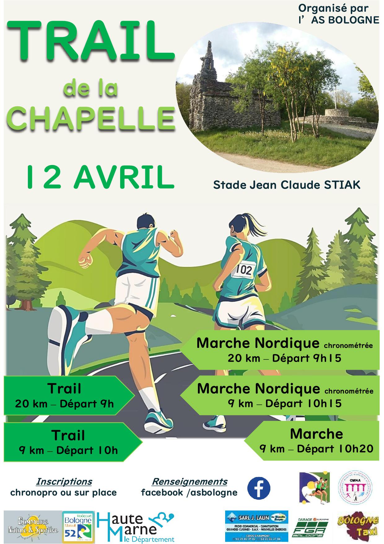Nos événementsLe Loto07/02/2026Salle des fêtes de BologneTrail de la Chapelle12 avril 2026Stade Jean-Claude Stiak – BologneInfos et inscriptionsSponsors & MécènesUne envie de nous aider? Devenez sponsor ou mécène sur l'un de nos événementsOn prend rendez-vous?